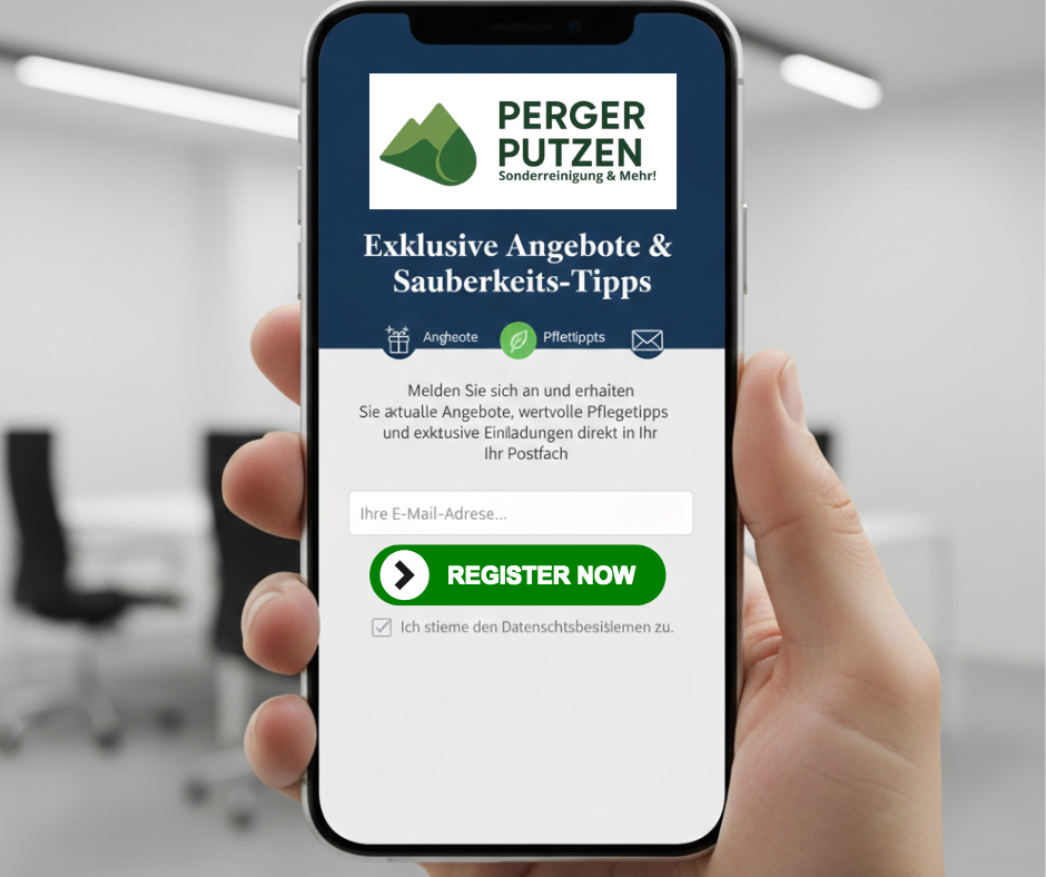 Benötigen Sie neben unseren Spezialleistungen auch eine zuverlässige, regelmäßige Unterhaltsreinigung für Ihr Gebäude? Unsere Partnerfirma Perger Putzen Gebäudereinigung & mehr bietet Ihnen maßgeschneiderte Konzepte für die tägliche Sauberkeit Ihrer Büros, Wohnanlagen und Gewerbeflächen.